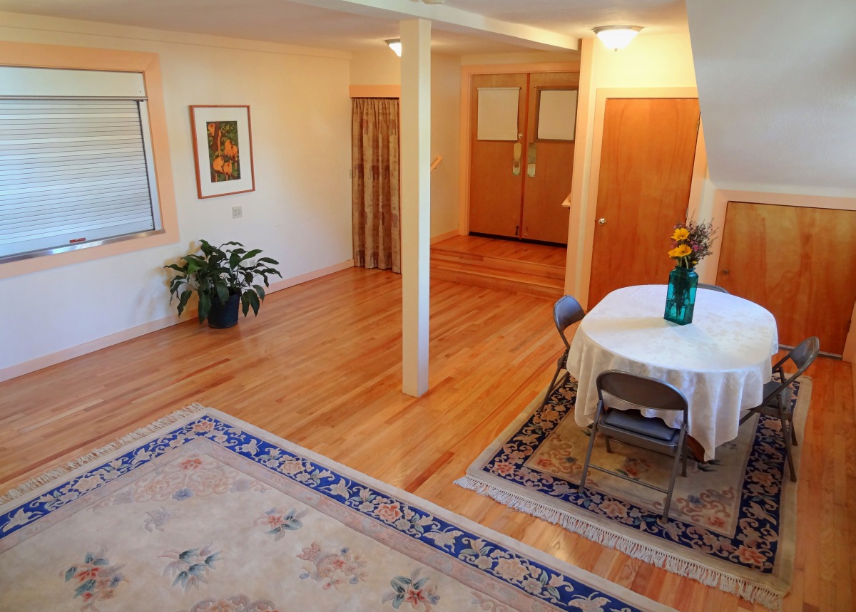 Our most economical room, the Dining Room is well-suited for several types of activities which include dining, arts and crafts, small meetings and classes. The room has direct access to the kitchen and front garden.