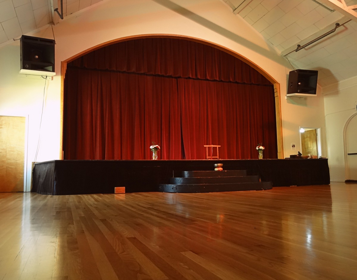 Our largest room, the Performance Hall combines spaciousness with intimacy. The hall may be comfortably used for theater productions, concerts, dances (barefoot only), large workshops, spiritual gatherings, craft fairs, wedding receptions, and other celebrations. A special feature is its high open-rafter ceiling with acoustical tiles creating excellent sound characteristics.